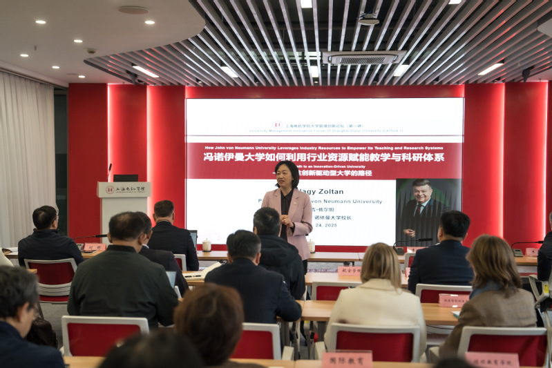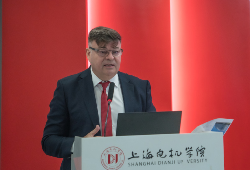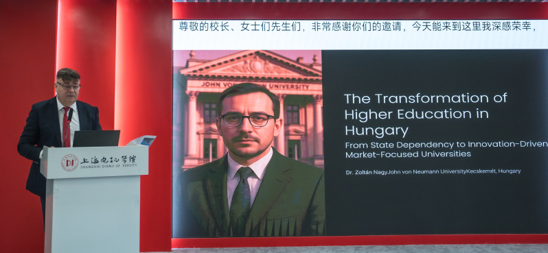 2025年11月24日,上海电机学院成功举办大学管理创新论坛,聚焦应用型高校治理模式创新与教育教学改革。论坛特邀匈牙利约翰·冯·诺伊曼大学校长Nagy Zoltan、Attila Kiss等一行四人来访,并由Nagy Zoltan校长作主题报告,分享该校在产教融合、数字化转型与创新驱动发展方面的先进经验。论坛由副院长杨俊杰主持,院长龚思怡、学校中层领导干部及教师代表参加。